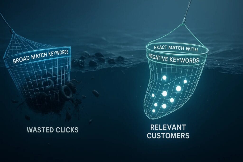 Imagine you’re selling high-end coffee beans. If you’re broadly targeting keywords like “coffee,” your ads might appear for searches related to instant coffee, coffee mugs, or even coffee shops. These users are unlikely to be interested in purchasing premium beans online.