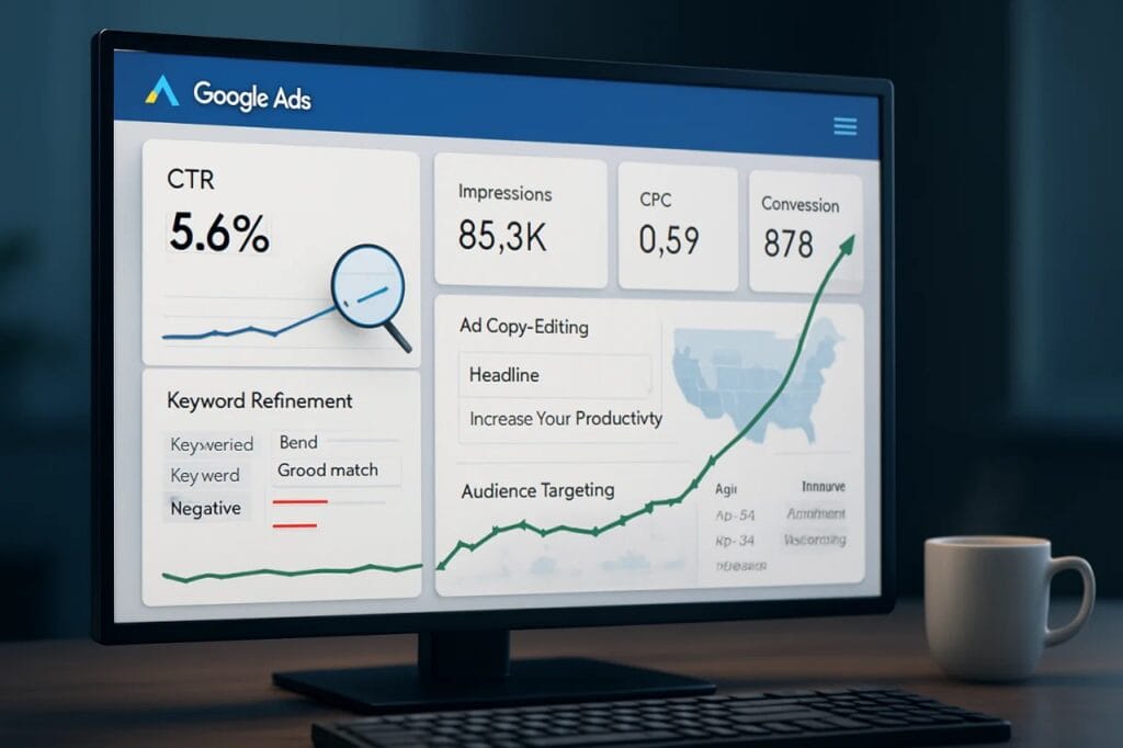 Improving your Google Ads CTR is an ongoing process that requires attention to detail and a willingness to experiment. Don’t get discouraged by initial low performance. By systematically analyzing your campaigns, identifying areas for improvement, and implementing the strategies outlined in this blog post, you can significantly enhance your ad performance. Remember that even small improvements in CTR can lead to substantial gains in traffic, conversions, and ultimately, your return on investment. Stay data-driven, keep testing, and continuously strive to optimize your campaigns for maximum effectiveness Want to see how I deliver results? Click here to view my portfolio.